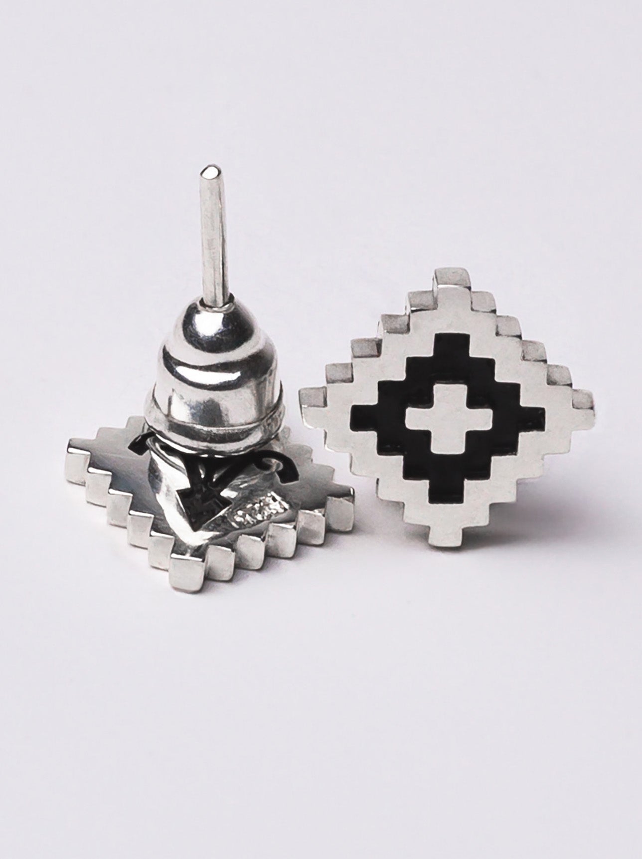These bold square stud earrings are a modern tribute to Armenian carpet patterns. Clean lines and black detailing make them an everyday essential with a touch of story and soul.